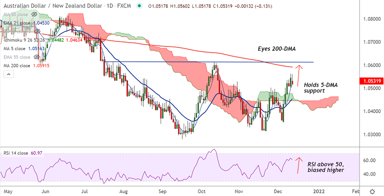 Support levels - 1.0516 (5-DMA), 1.0479 (110-EMA), 1.0453 (21-EMA)