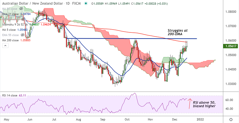 Summary: AUD/NZD is struggling at 200-DMA resistance. Watchout for decisive break above for upside continuation.