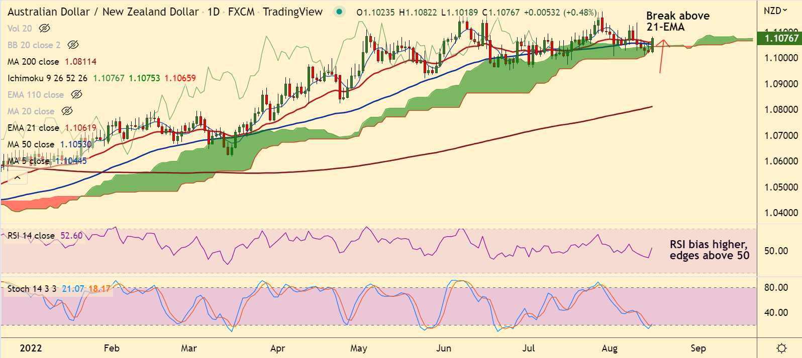 Summary: AUD/NZD snaps 5-day downside, retrace above cloud has raised scope for upside.
