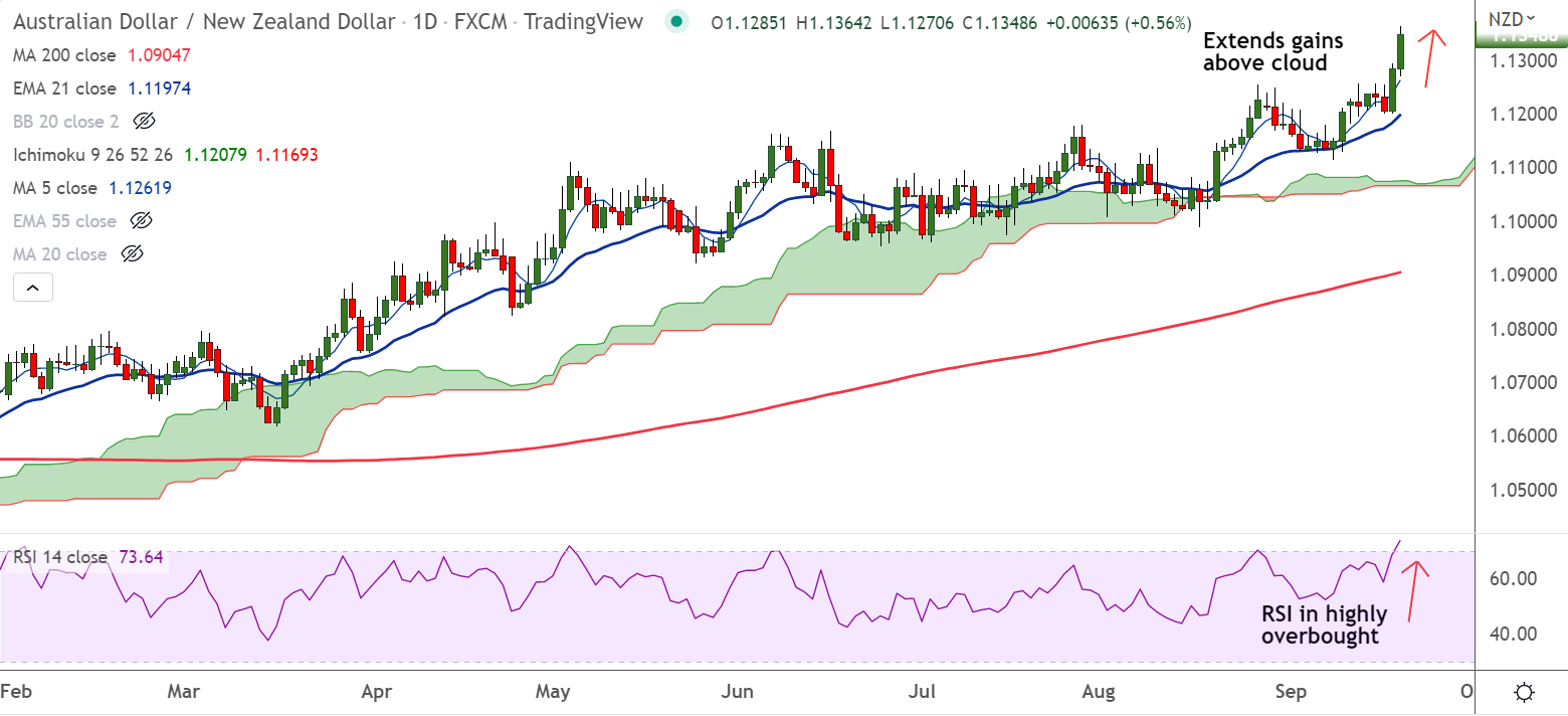 - AUD/NZD was trading 0.59% higher on the day at 1.1351 at around 13:50 GMT
