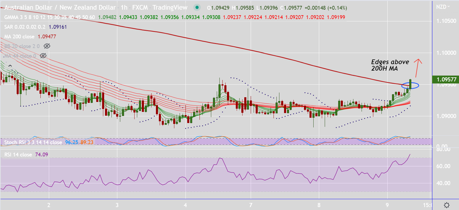 The pair has edged above 200H MA and GMMA indicator has turned bullish on the intraday charts.