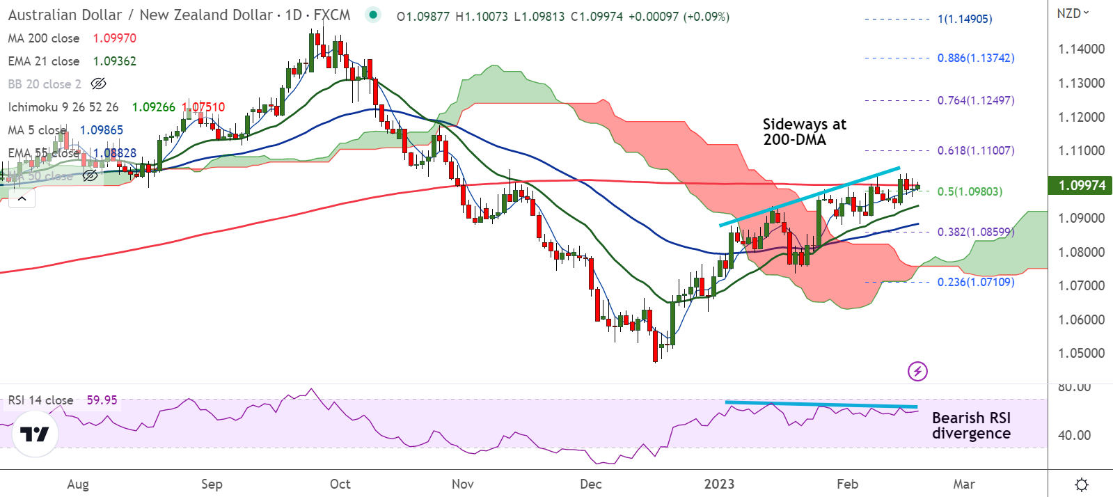 Summary: AUD/NZD pivotal at 200-DMA. Decisive break above will propel the pair higher. Scope for test of 61.8% Fib at 1.11.