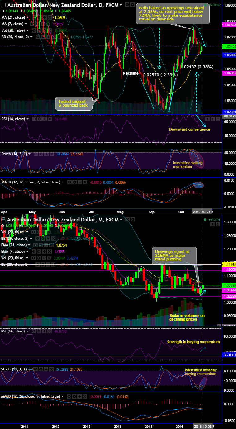 On the daily chart, amid the last week’s bearish journey, bulls taking support at 1.0608 levels (i.e. 21DMA) & attempting to drag Friday’s gains.