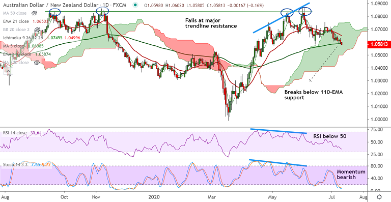 Dip till 200-DMA at 1.0536 likely. Violation at 200-DMA opens further downside for the pair.
