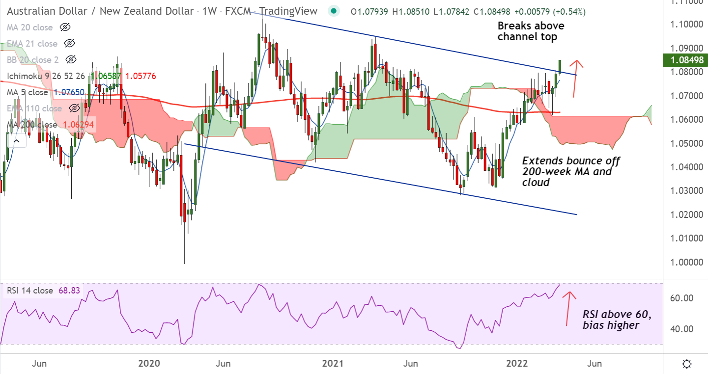 - Price action has broken out of channel top resistance, raising scope for further upside
