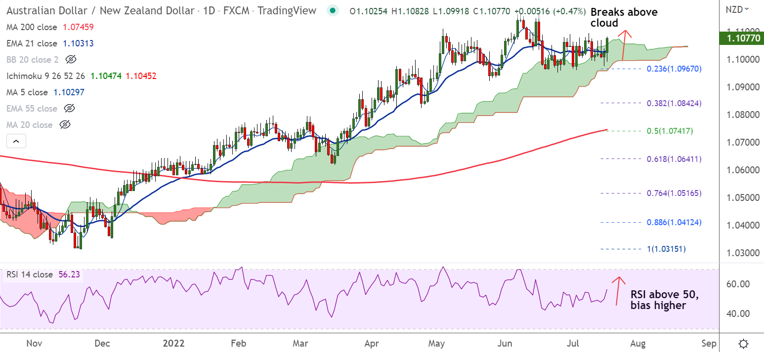 The pair has broken above daily cloud, raising scope for further upside.