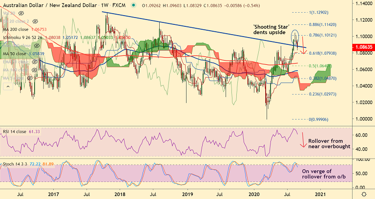 'Shooting Star' pattern formed on the weekly charts has halted the uptrend in the pair.