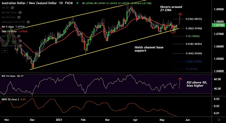 Summary: AUD/NZD has bounced off channel base support. Technical indicators have turned bullish. Stochs and RSI are biased higher. The pair is set to resume upside. Break below channel negates any upside in the pair.
