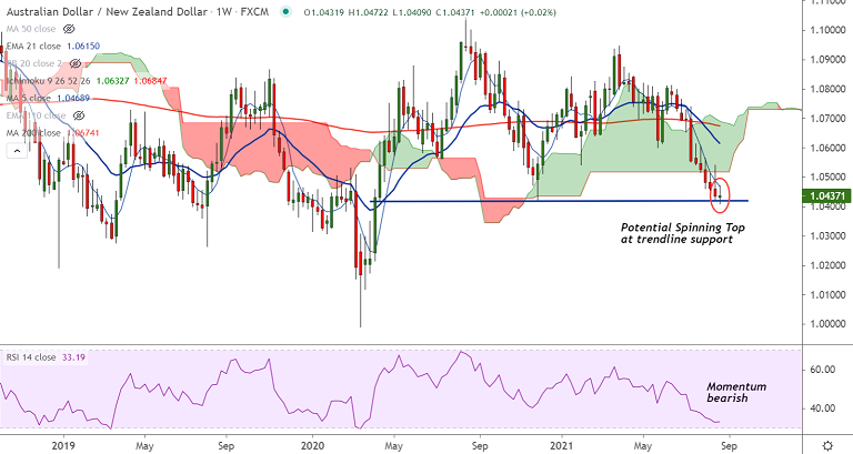 - AUD/NZD is on track to close the week with a Spinning Top formation