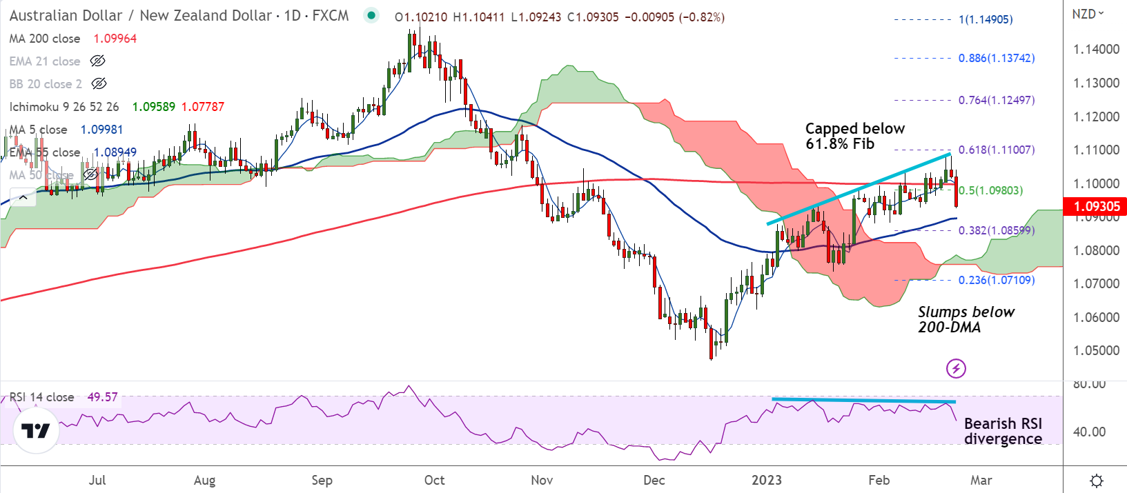 - The pair is extending weakness for the second consecutive session, breaks below 200-DMA