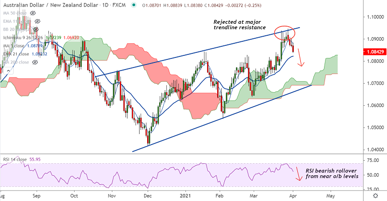 AUD/NZD is extending weakness for the 4th straight session, outlook is bearish.