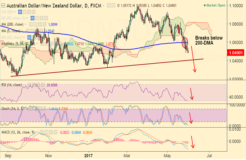 - The pair has broken below 200-DMA and price action well below daily cloud.