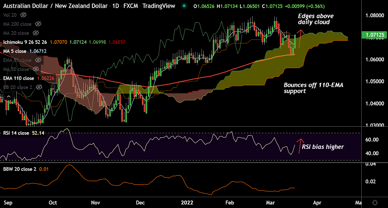 Support levels - 1.0693 (Cloud top), 1.0671 (5-DMA), 1.0622 (110-EMA)