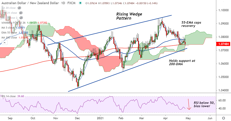 - Recovery attempts in the pair capped at 21-EMA, stiff resistance seen till 1.08 mark