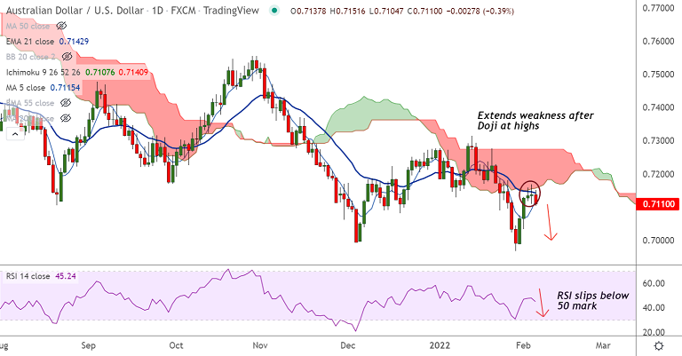 - Upside in the pair has been capped at 12-EMA and daily cloud base