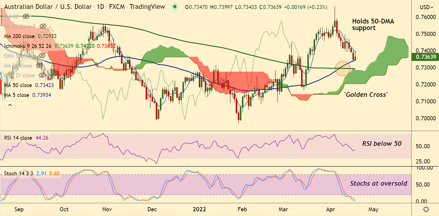 Support levels - 0.7342 (50-DMA), 0.7320 (110-EMA), 0.7293 (200-DMA)