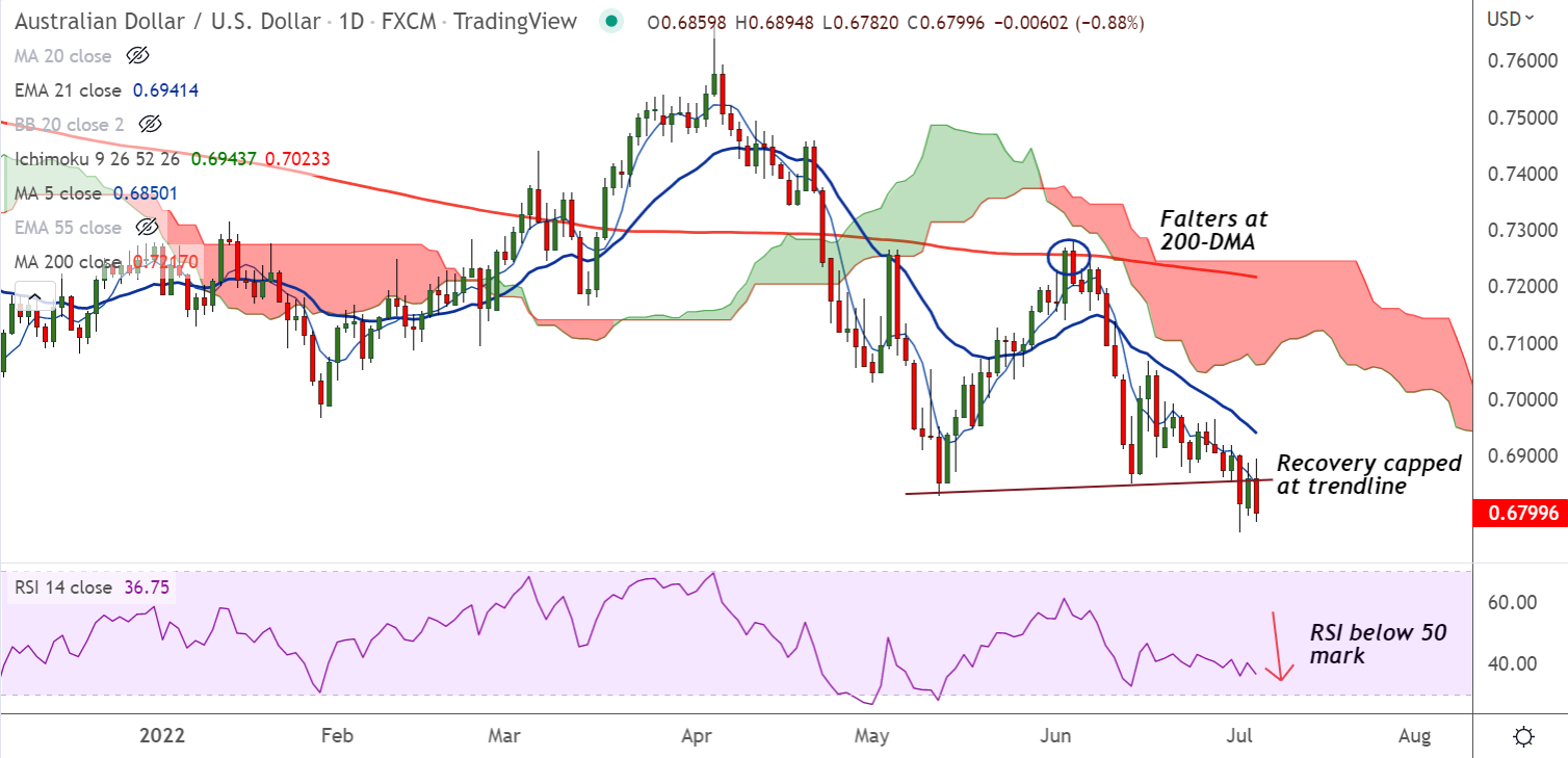 - 'Death Cross' (bearish 50-DMA crossover on 200-DMA) on the daily charts keeps bias lower
