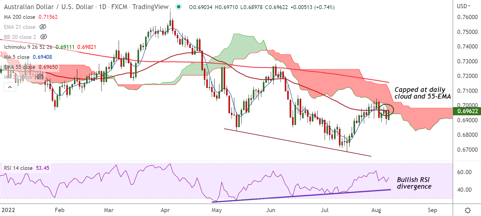 - The pair has retraced most of previous session's losses, retests 55-EMA and cloud resistance