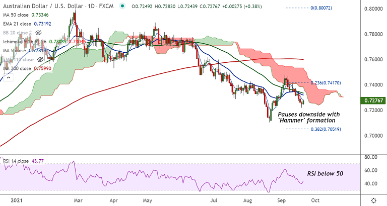 Summary: AUD/USD major trend remains bearish. Strong recovery looks elusive amid China property developer Evergrande's solvency issues and looming FOMC policy meeting.