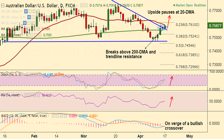 Resistance levels - 0.76, 0.7610 (23.6% Fib), 0.7621 (50-DMA), 0.7679(Mar 30 high)
