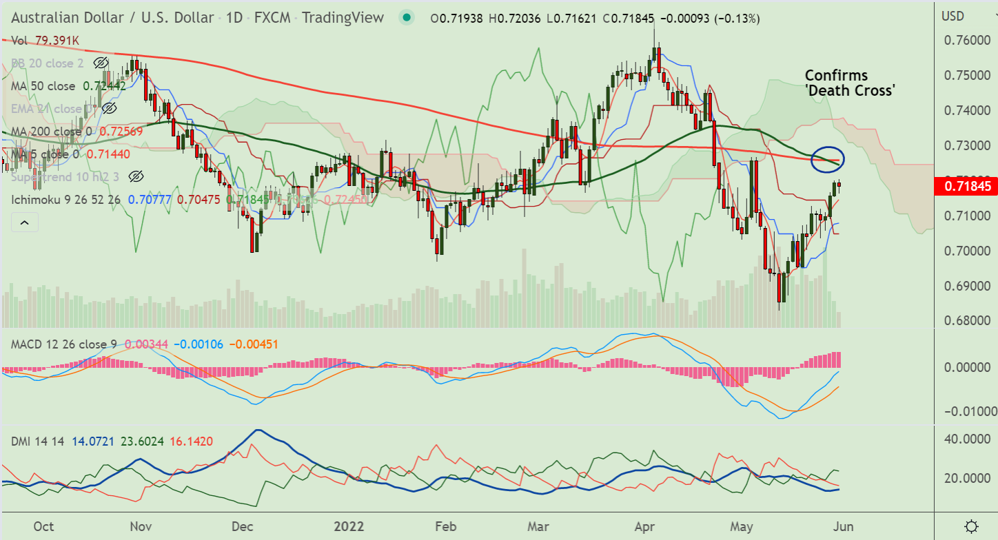 - AUD/USD confirms 'Death Cross' on the daily charts