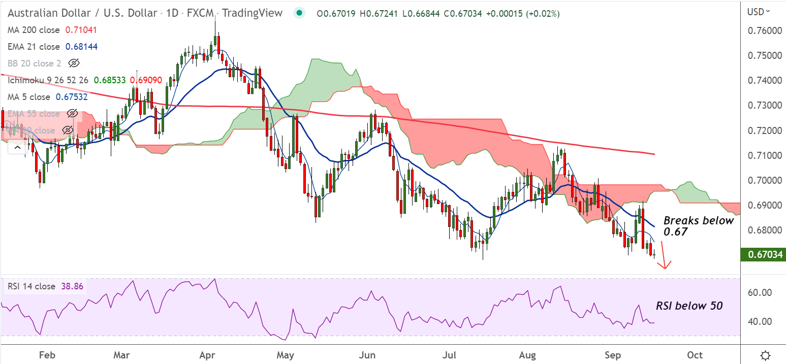 Summary: AUD/USD trades with a bearish bias. The pair is poised to test fresh yearly lows below 0.6681.