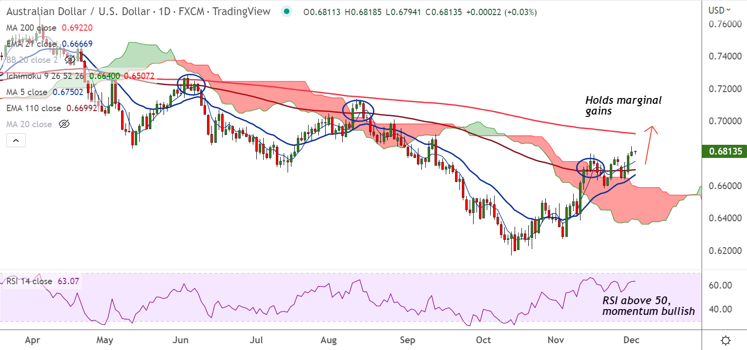 The Australian Dollar is seeing some fresh demand on RBA Lowe’s comments, AUD/USD holds marginal gains as traders wait key US employment data for November.