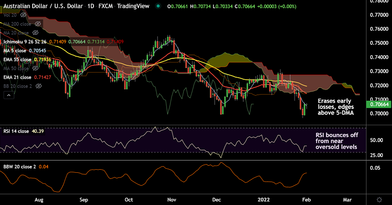 AUD/USD was trading largely unchanged on the day at 0.7064 at around 05:00 GMT, bias remains bearish.