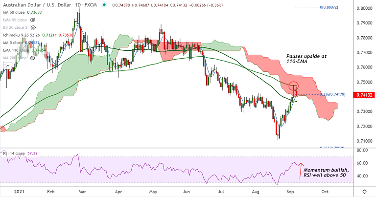 However, souring risk appetite and US dollar rebound from the day’s low along with firmer Treasury yields drag the pair lower.