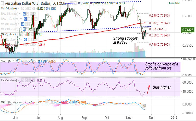 - Major support levels - 0.74, 0.7386 (5-DMA & 61.8% Fib), 0.7311 (Nov 21 low), 0.7280 (78.6% Fib)
