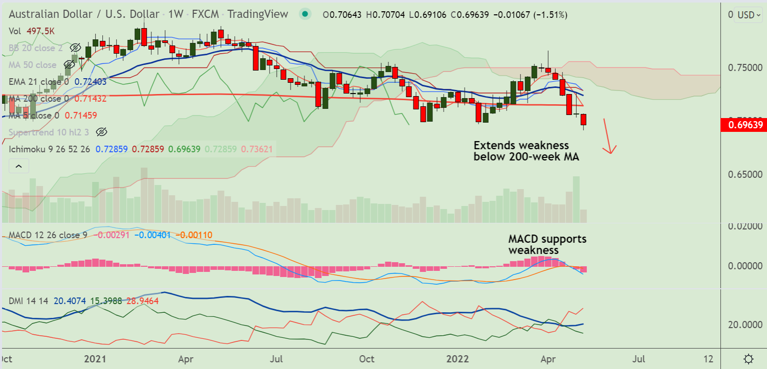 - Gravestone Doji formed on the previous week's candle dents upside