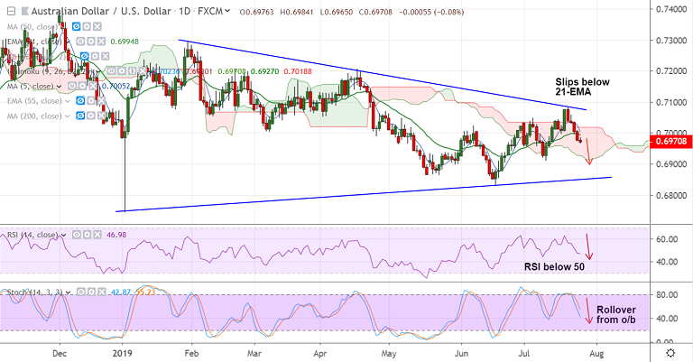 AUD/USD could see further downside as a result. Technical indicators are also bearish.