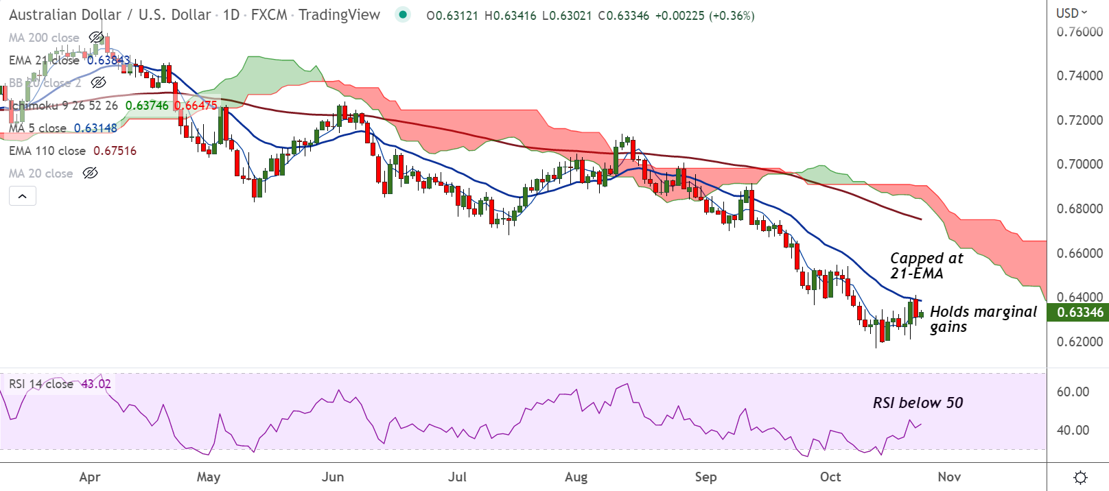 Major Resistance Levels: 0.6359 (20-DMA), 0.6385 (21-EMA)