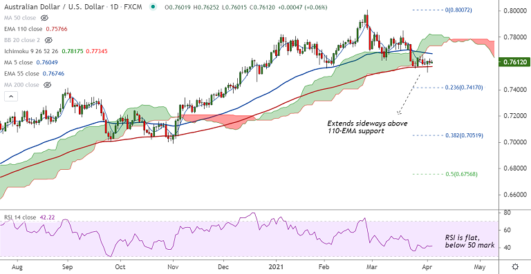The pair was extending sideways grind along 110-EMA support, break below will plummet prices.