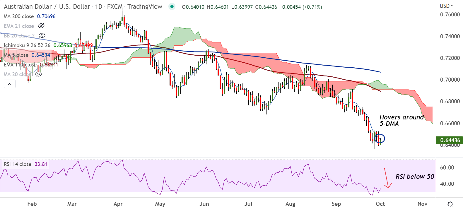 Summary: AUD/USD trades with a bearish bias. Recovery lacks traction, major bias remains bearish. Break above 5-DMA could see more gains. Bearish invalidation only above 21-EMA.