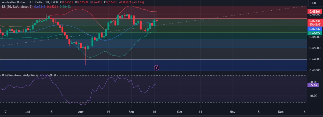 • AUD/USD hovered around on 0.6740 Tuesday as investors cautiously awaited for likely interest rate cut from the U.S. Federal Reserve this week.