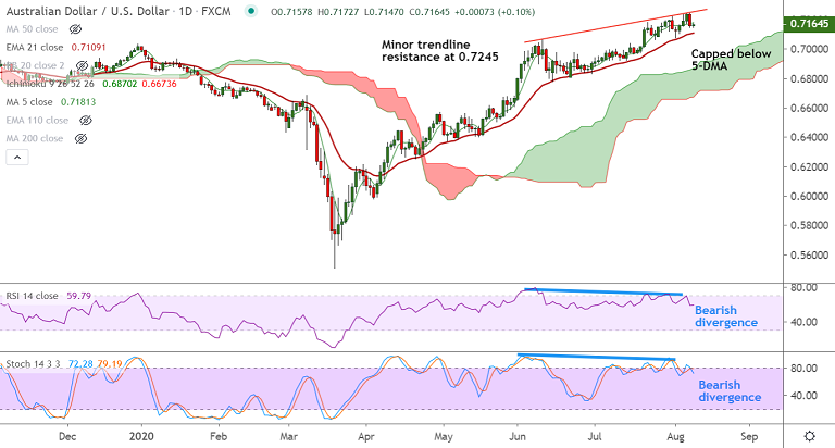 Major Support: 0.7109 (21-EMA), 0.6954 (55-EMA)