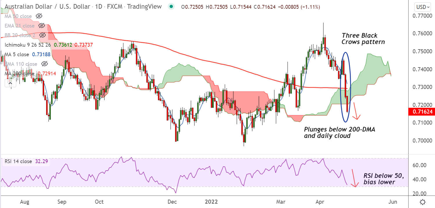 - Close below 200-DMA on Friday's trade has opened downside in the pair