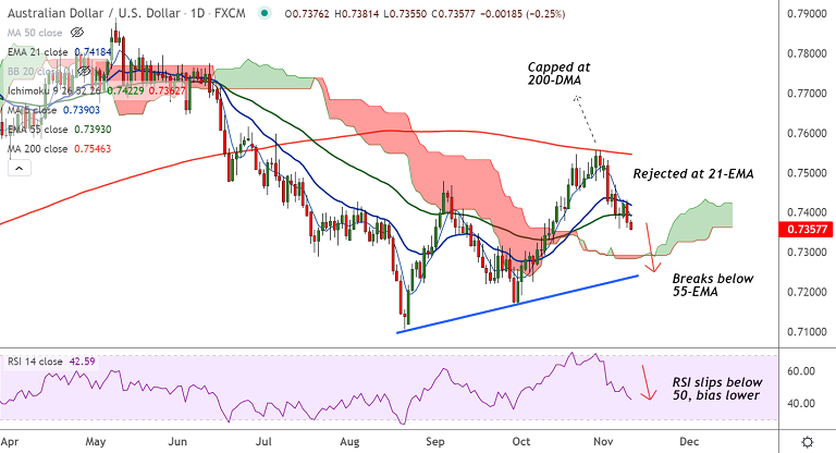 - AUD/USD recovery rejected at 21-EMA
