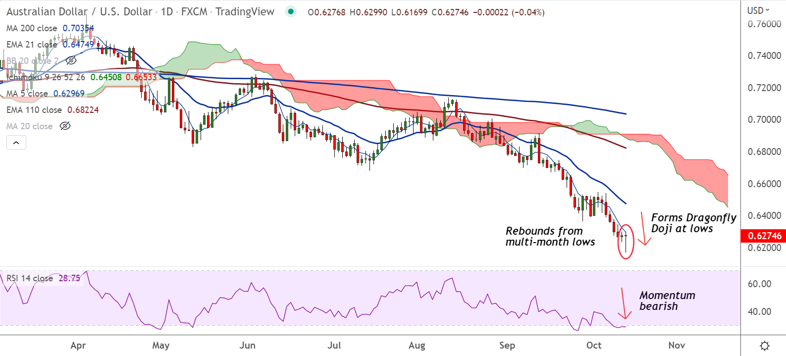 The pair has bounced off from multi-month lows at 0.6169 hit earlier on the day.