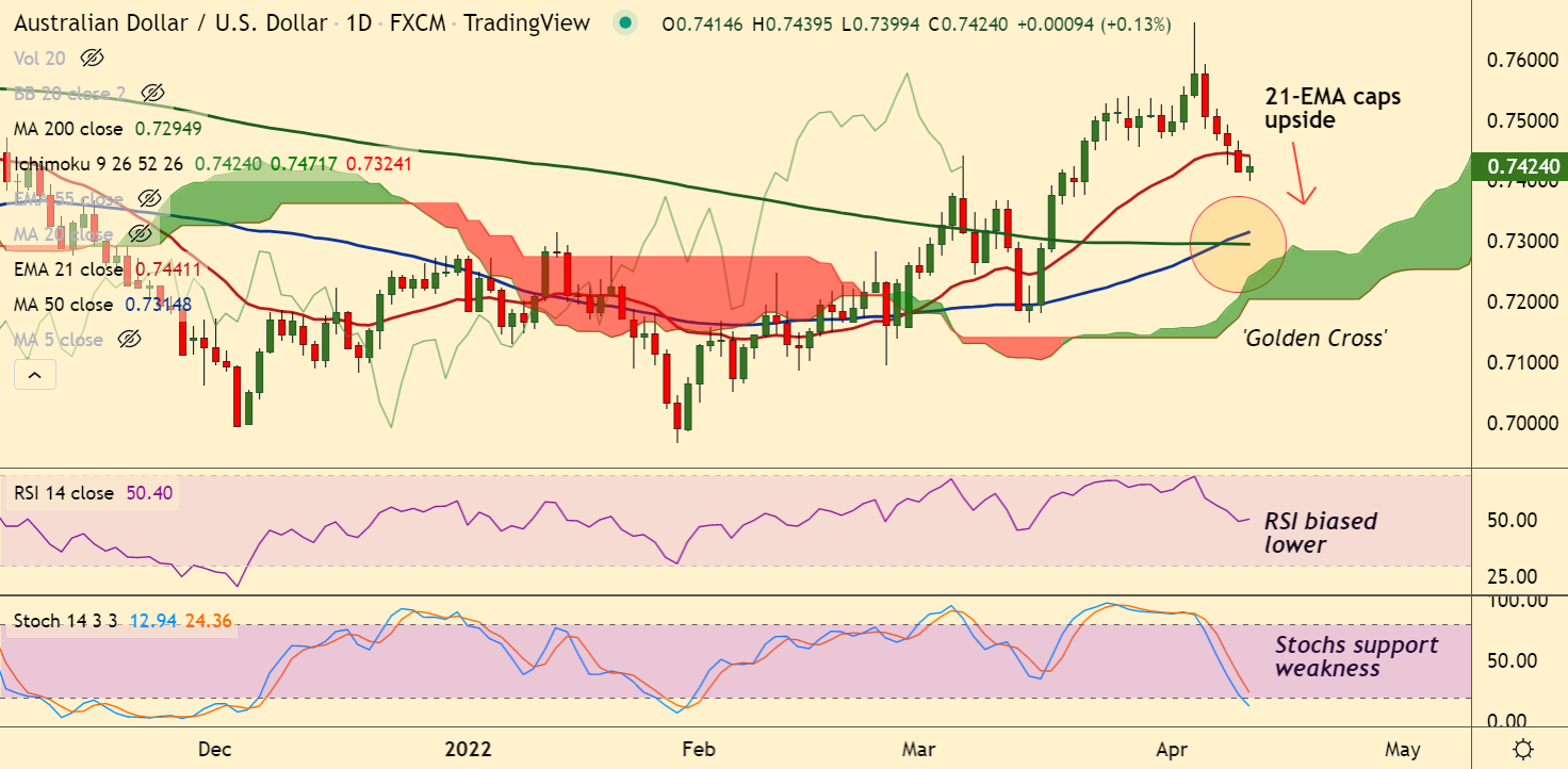 Upside remains capped at 21-EMA, technical indicators support weakness in the pair.