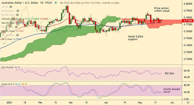 Technical bias for the pair remains neutral. 55-EMA is offering strong support. Break below will see major weakness.