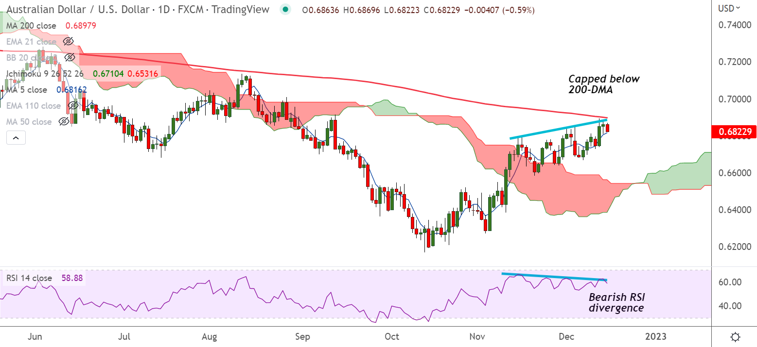 Summary: AUD/USD struggles at 200-DMA. Technical indicator support upside. Watch out for decisive break above for upside continuation.