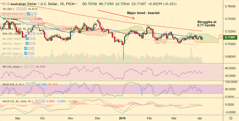 Recommendation: Stay short on upticks around 0.71/0.7115, SL: 0.7160, TP: 0.7055/ 0.70