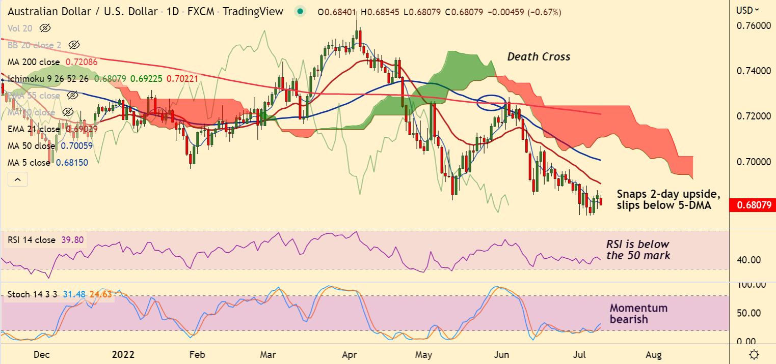 - AUD/USD has snapped a two-day upside streak and has resumed weakness
