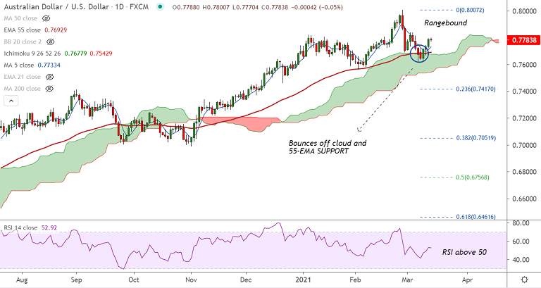 AUD/USD has paused gains at 0.78 handle, trades largely unchanged at 0.7783 at around 04:30 GMT.
