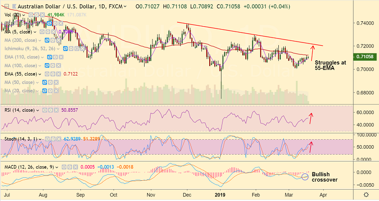Support levels - 0.7094 (21-EMA), 0.7089 (5-DMA), 0.7003 (Mar 8 low)
