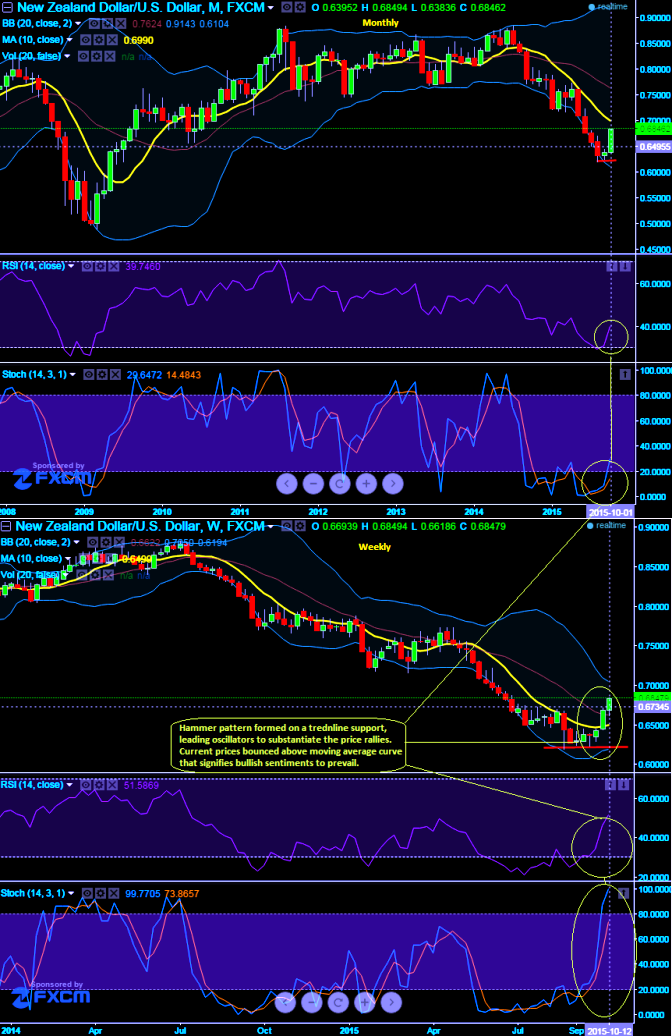 To substantiate this bullish view we also spotted out a hammer pattern on the bottom (at 0.6375 levels) which could be deemed as bullish reversal in medium run. Hammer at the bottom suggest bears have lost interest and bulls have aggressively snatched the price gains, as result long lower shadow is formed from the lows of the week.