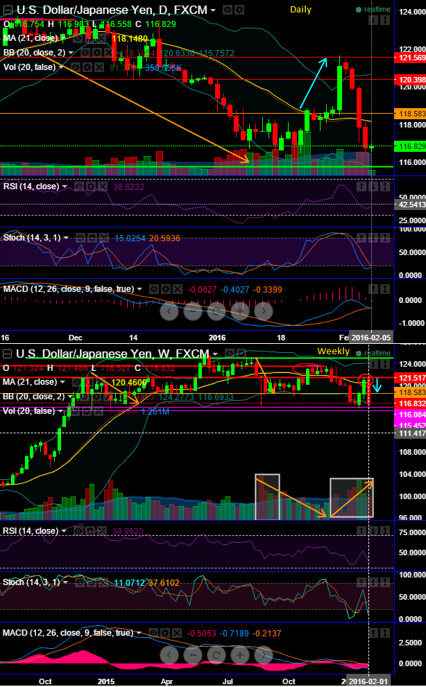 While on daily charts, both leading and lagging indicators still have bearish signals as the price curve resembles as if they are heading towards deep tunnel, the back to back bearish candles with big real body reveals the weakness and seems like the pair is comfortable in the range between 115-118.