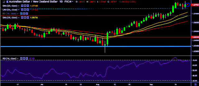 - AUD/NZD is currently trading around 1.0799 marks.
